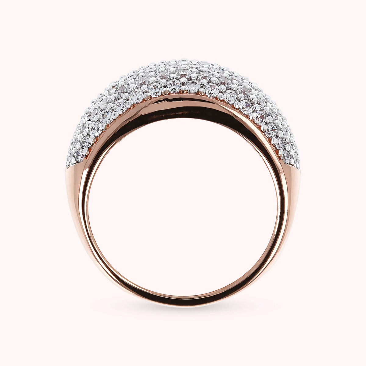 Anello pavé realizzato in lega Golden Rosé, placcato oro rosa 18kt, impreziosito da cubic zirconia di colore bianco, qualità luminosa. Creazione elegante, dal design perfetto per far brillare il tuo look.