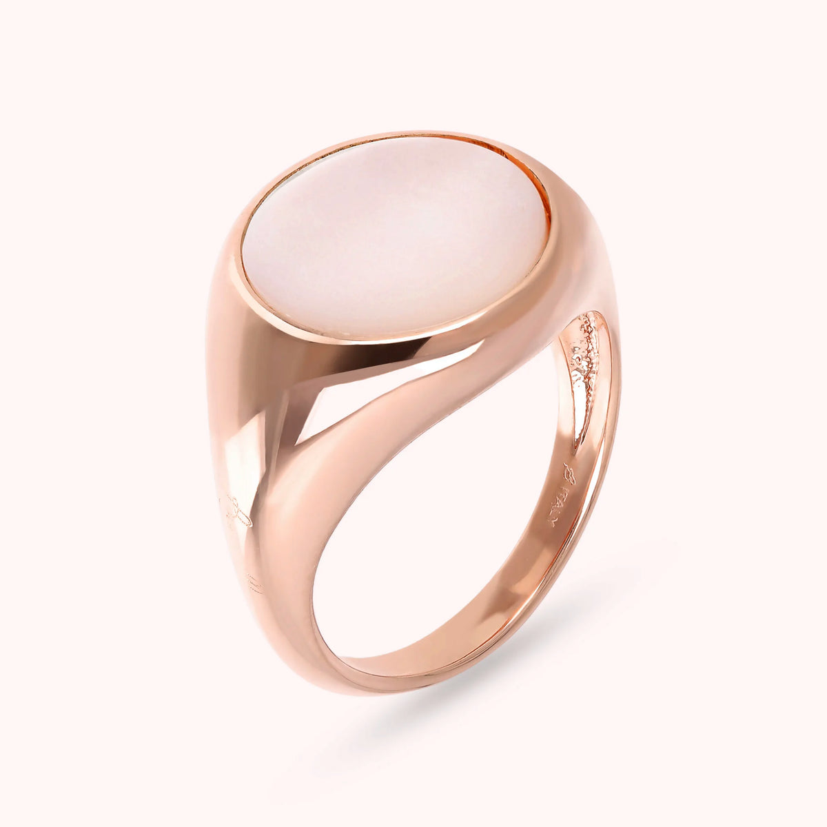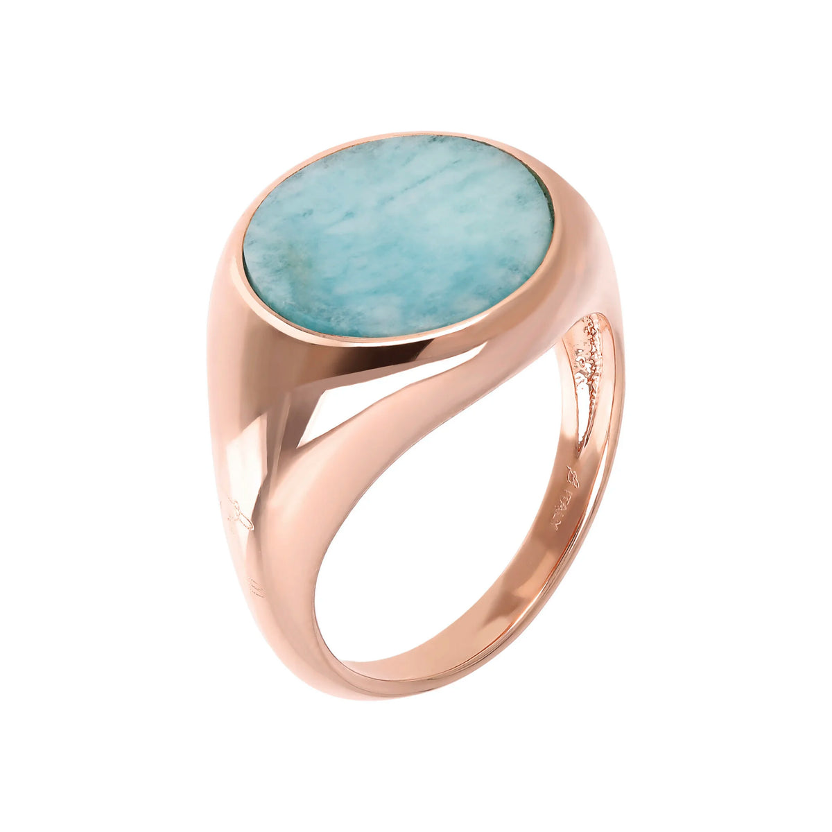 Anello chevalier realizzato in lega Golden Rosé, placcato oro rosa 18kt, impreziosito da una pietra naturale (12 mm) dalla forma tondeggiante e dalla superficie liscia. Creazione elegante, dal design perfetto per rendere unico il tuo look.