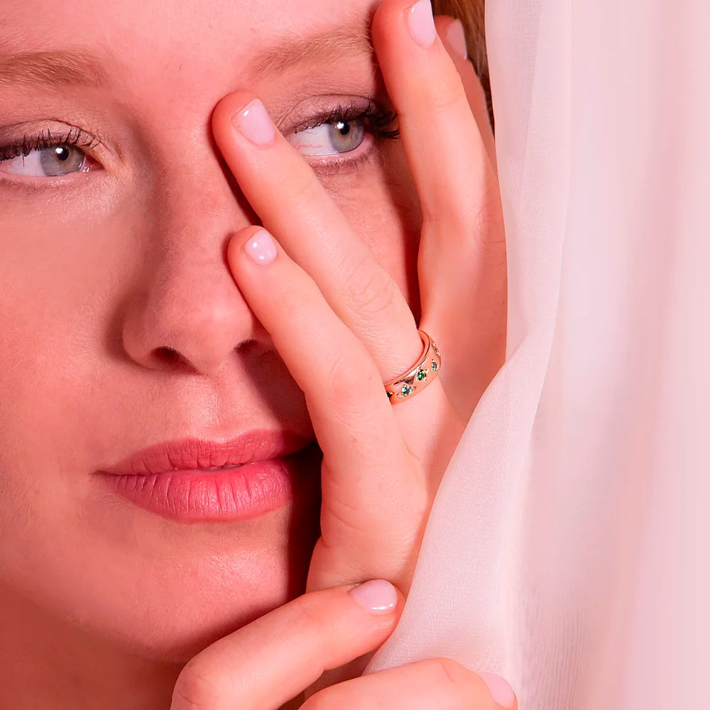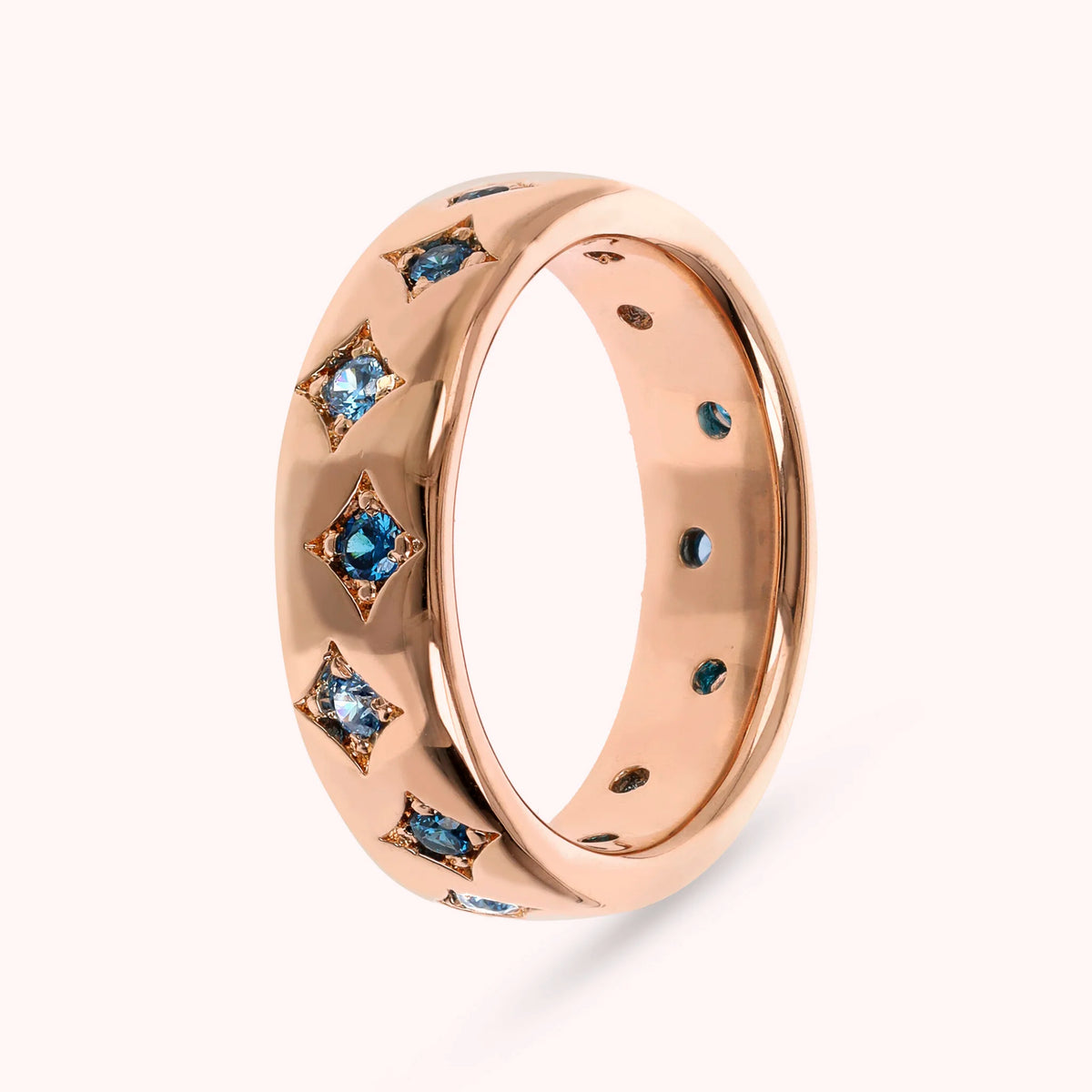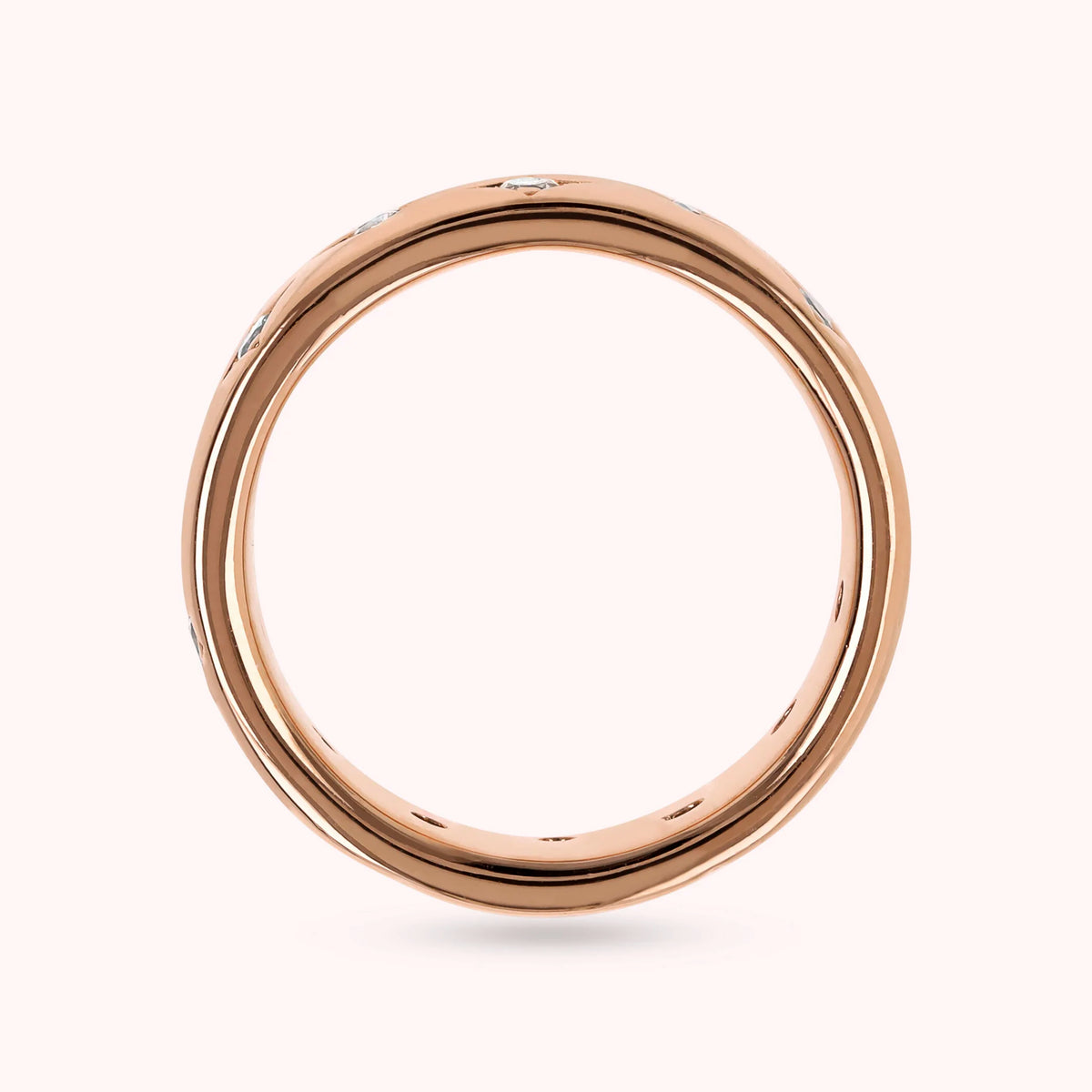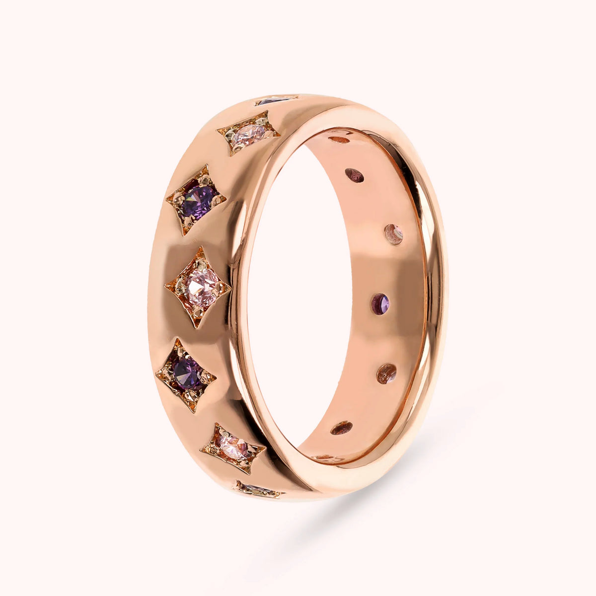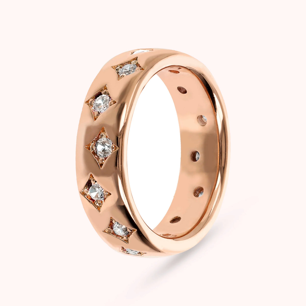 Anello fedina realizzato in lega Golden Rosé, placcata Oro rosa 18kt, impreziosito da étoile con punto luce in cubic zirconia, qualità luminosa.