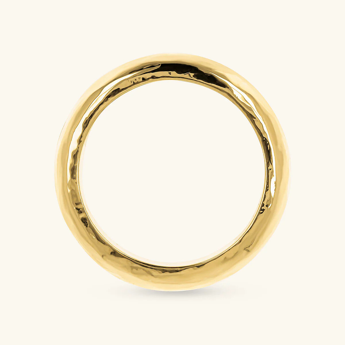 Anello fedina realizzato in lega Golden, placcata oro giallo 18kt, dal design classico con superficie martellata.