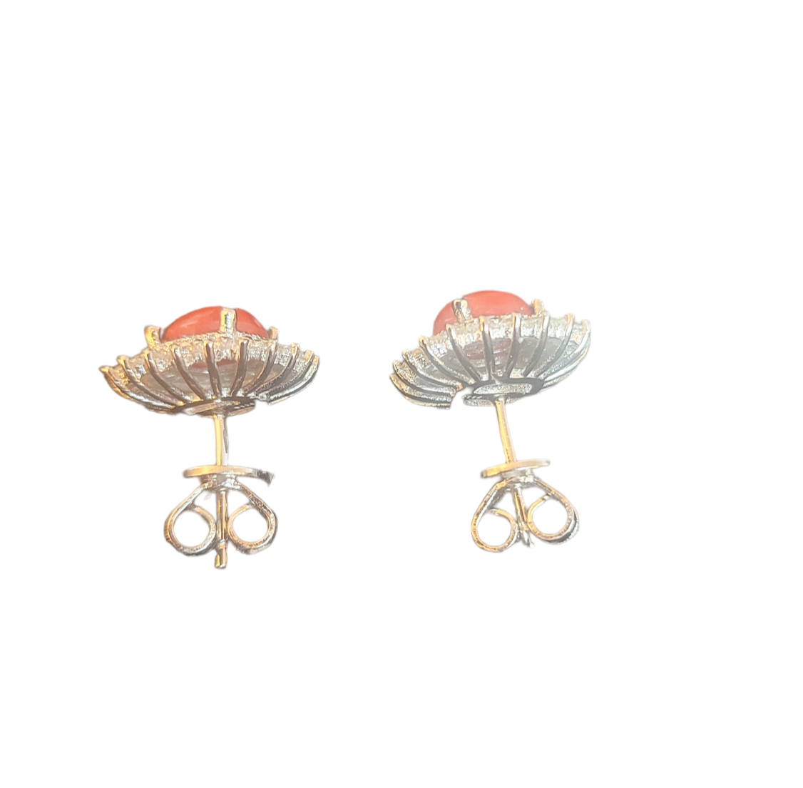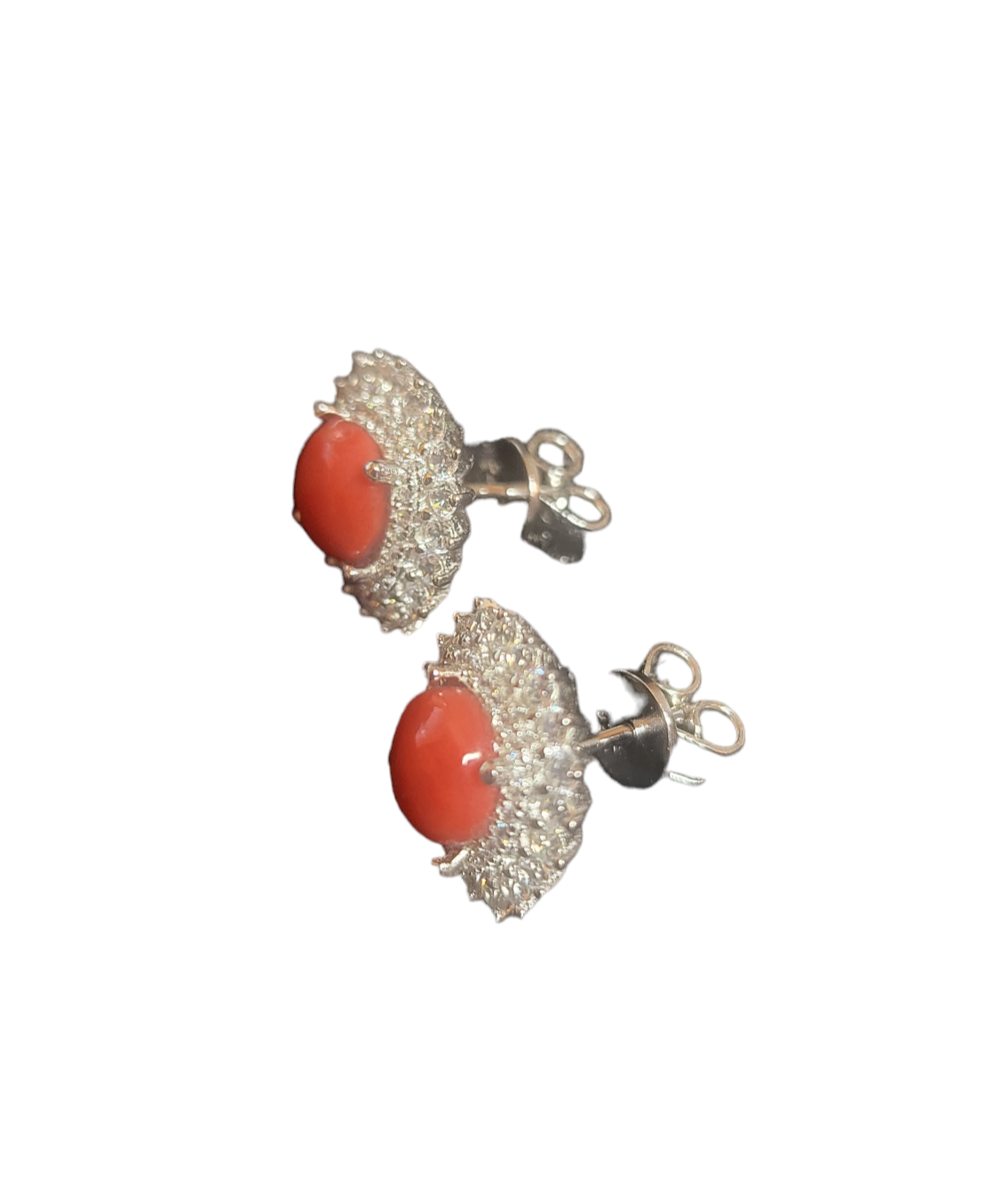 QuestI elegantI e scintillanti orecchini con Corallo naturale Sardo realizzati in argento 925 ed è intarsiato con zirconi. Glamour senza tempo.