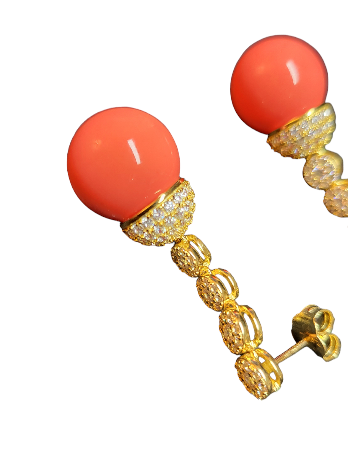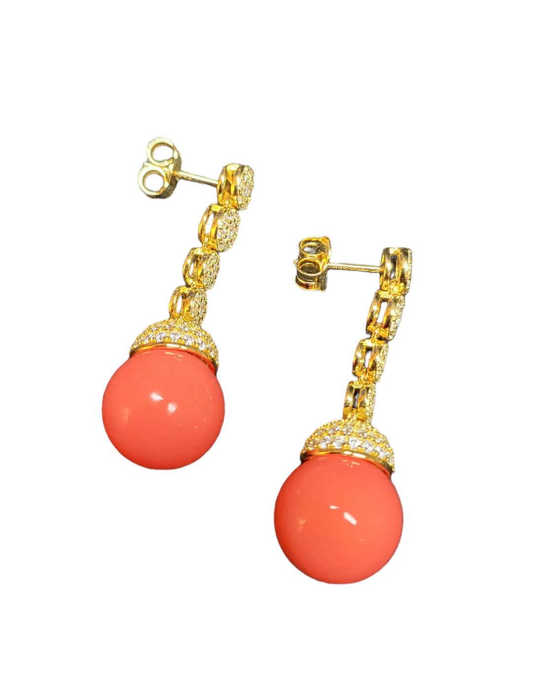 QuestI elegantI e scintillanti orecchini con Corallo naturale Sardo realizzati in argento 925 ed è intarsiato con zirconi. Glamour senza tempo.