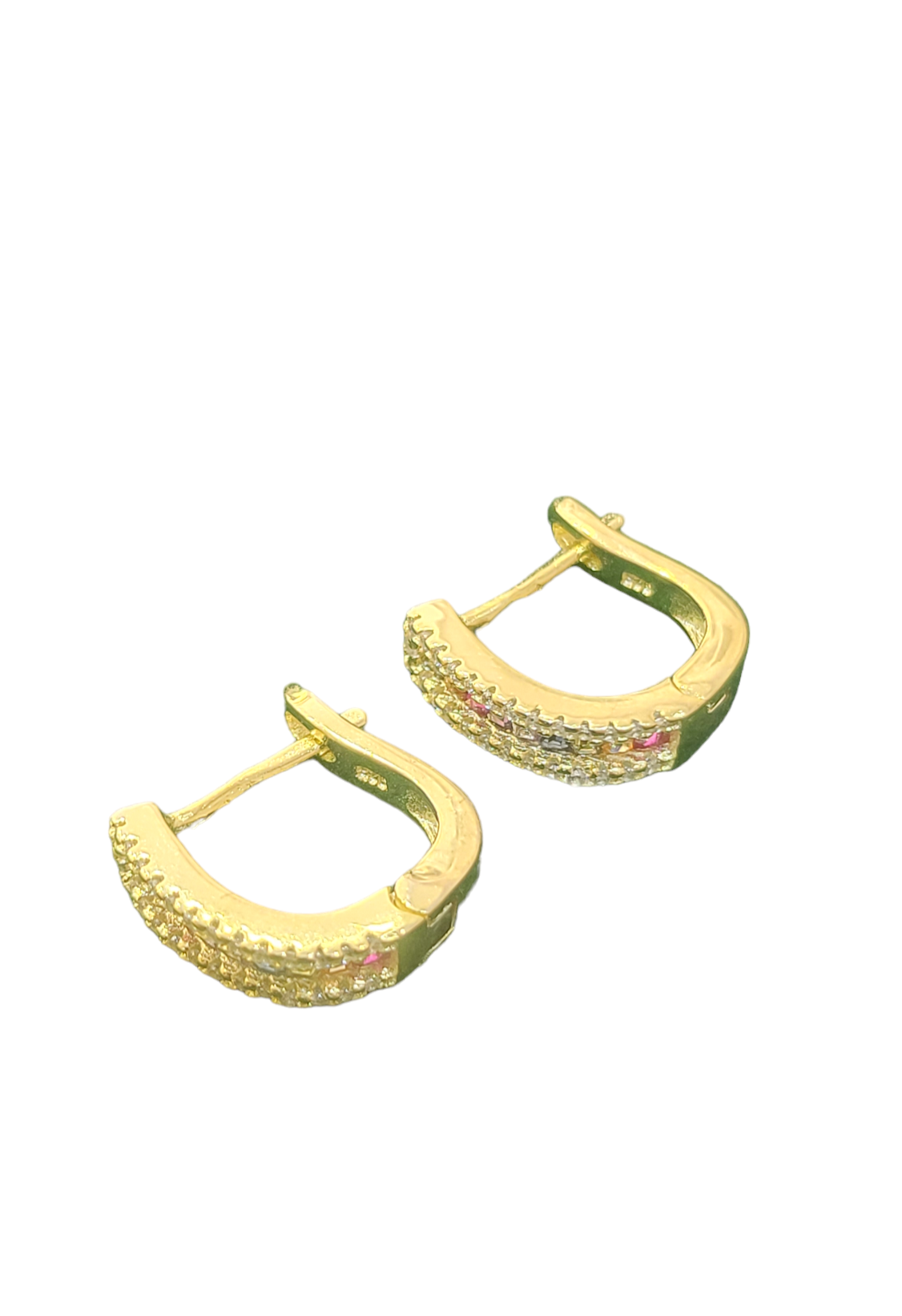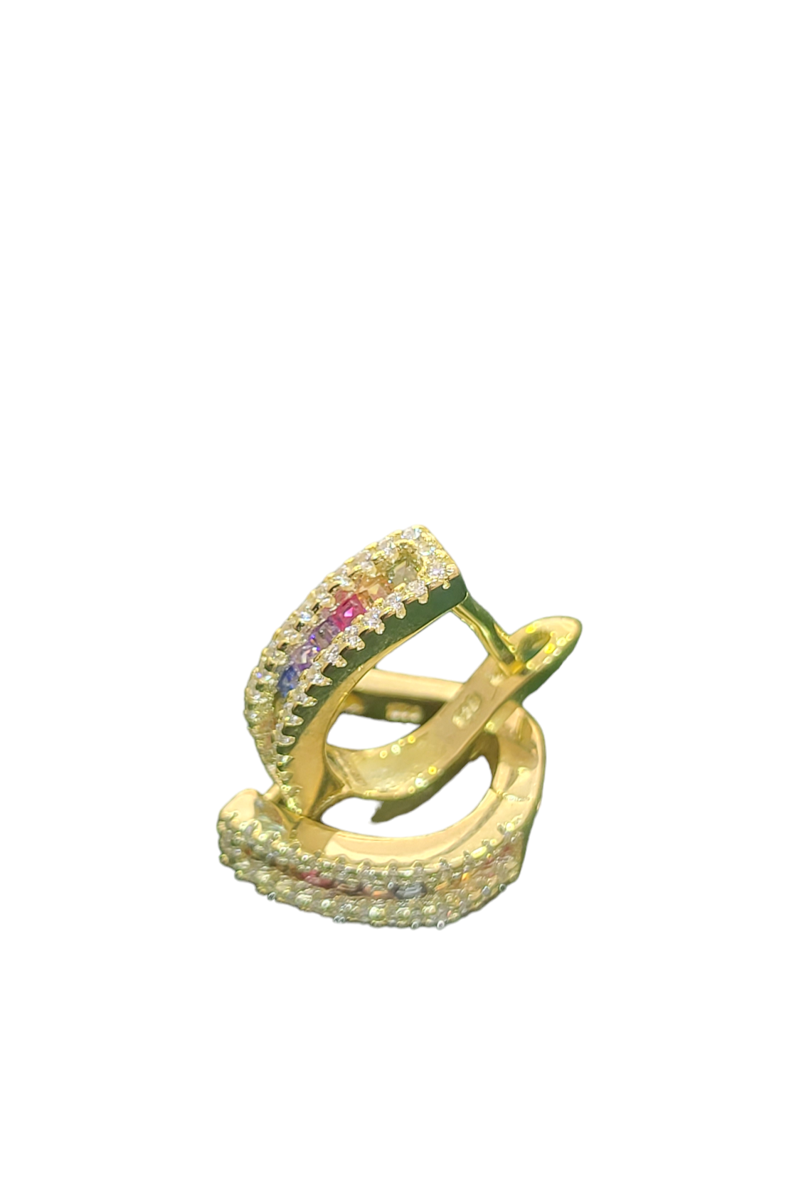 Questi eleganti e scintillanti orecchini placcati oro 18 kt. realizzati in argento 925 ed è intarsiato con zirconi colorati di altissima qualità AAA.