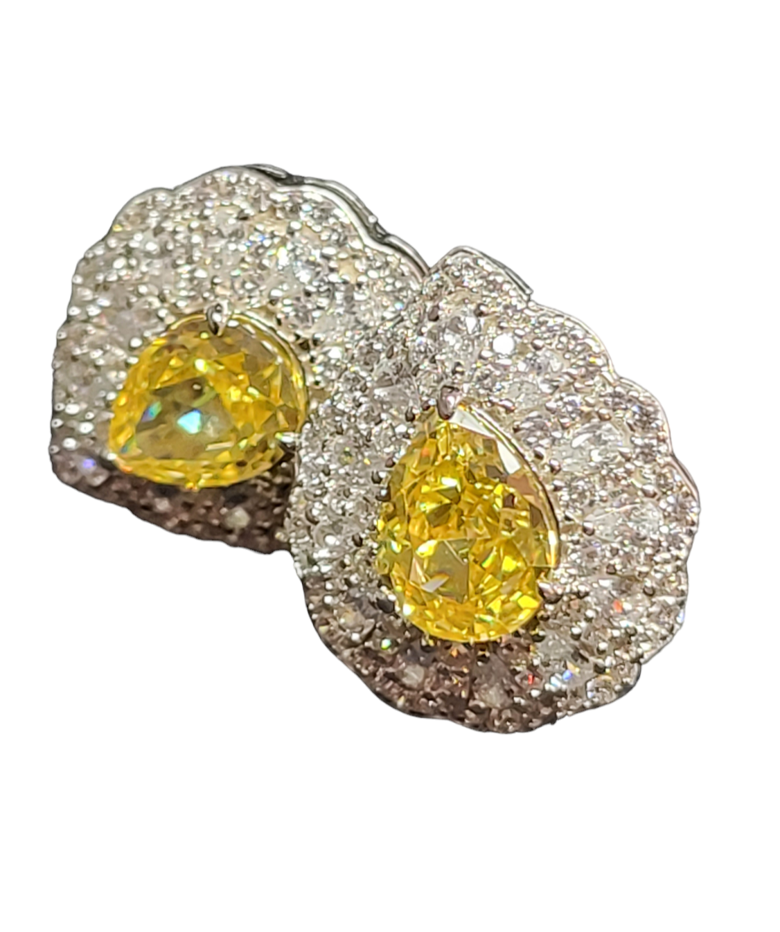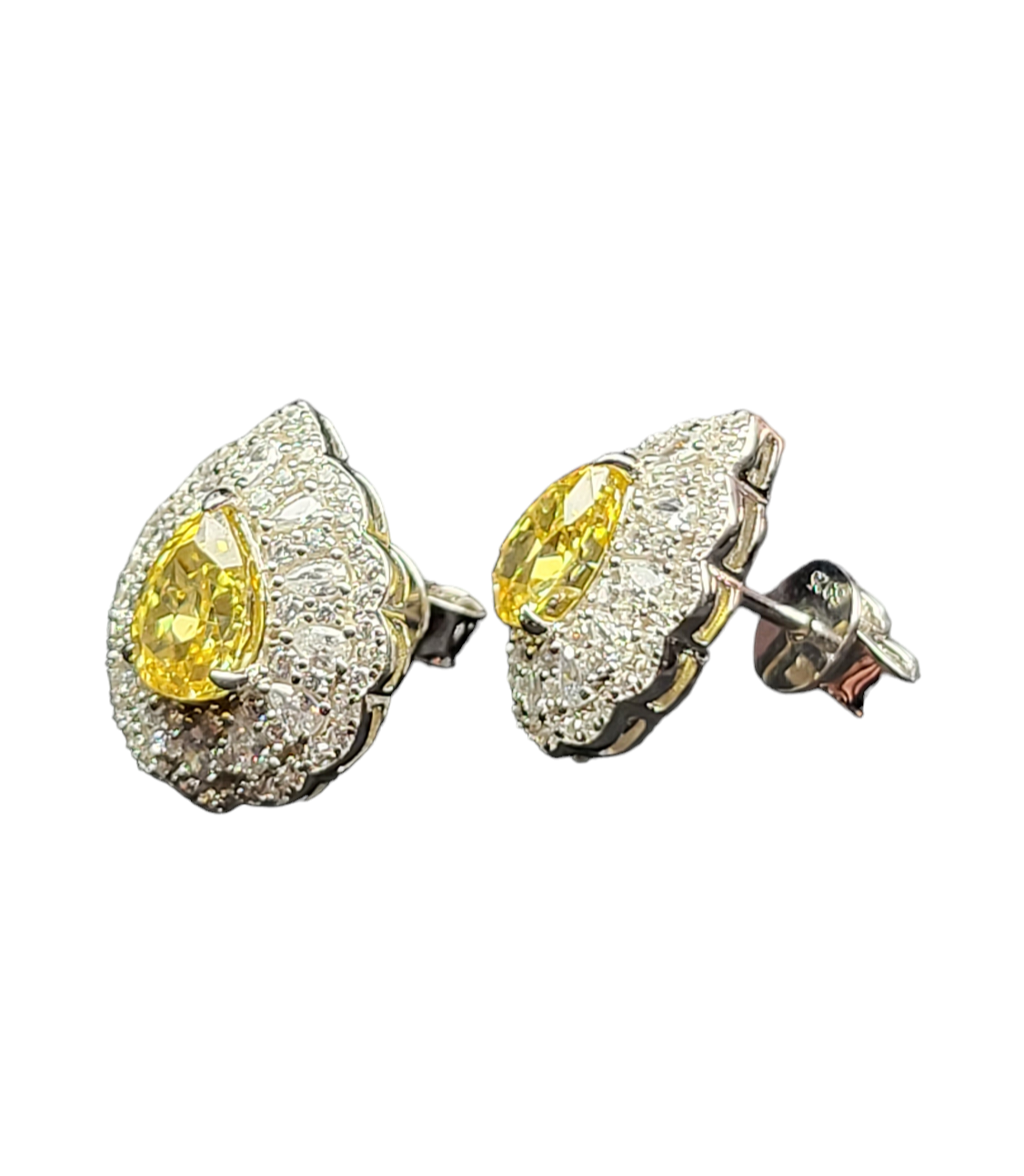 QuestI elegantI e scintillanti orecchini con Zirconi colorati gialli realizzati in argento 925 e sovrastati da zirconi taglio rotondo bianchi. Glamour senza tempo.