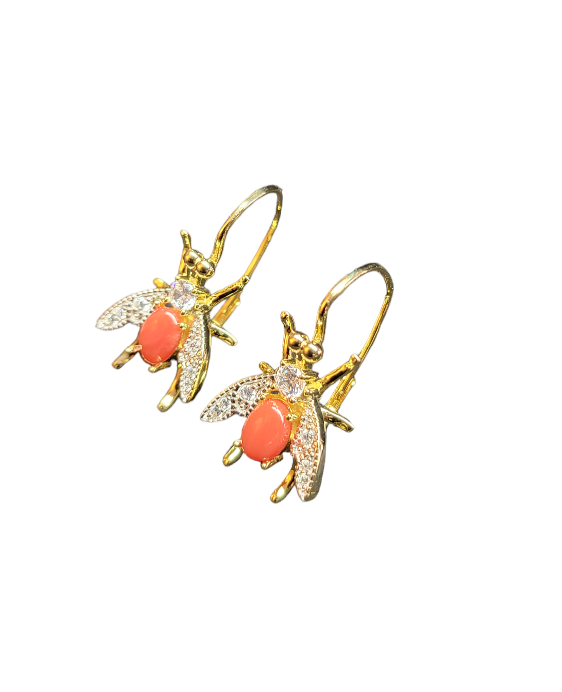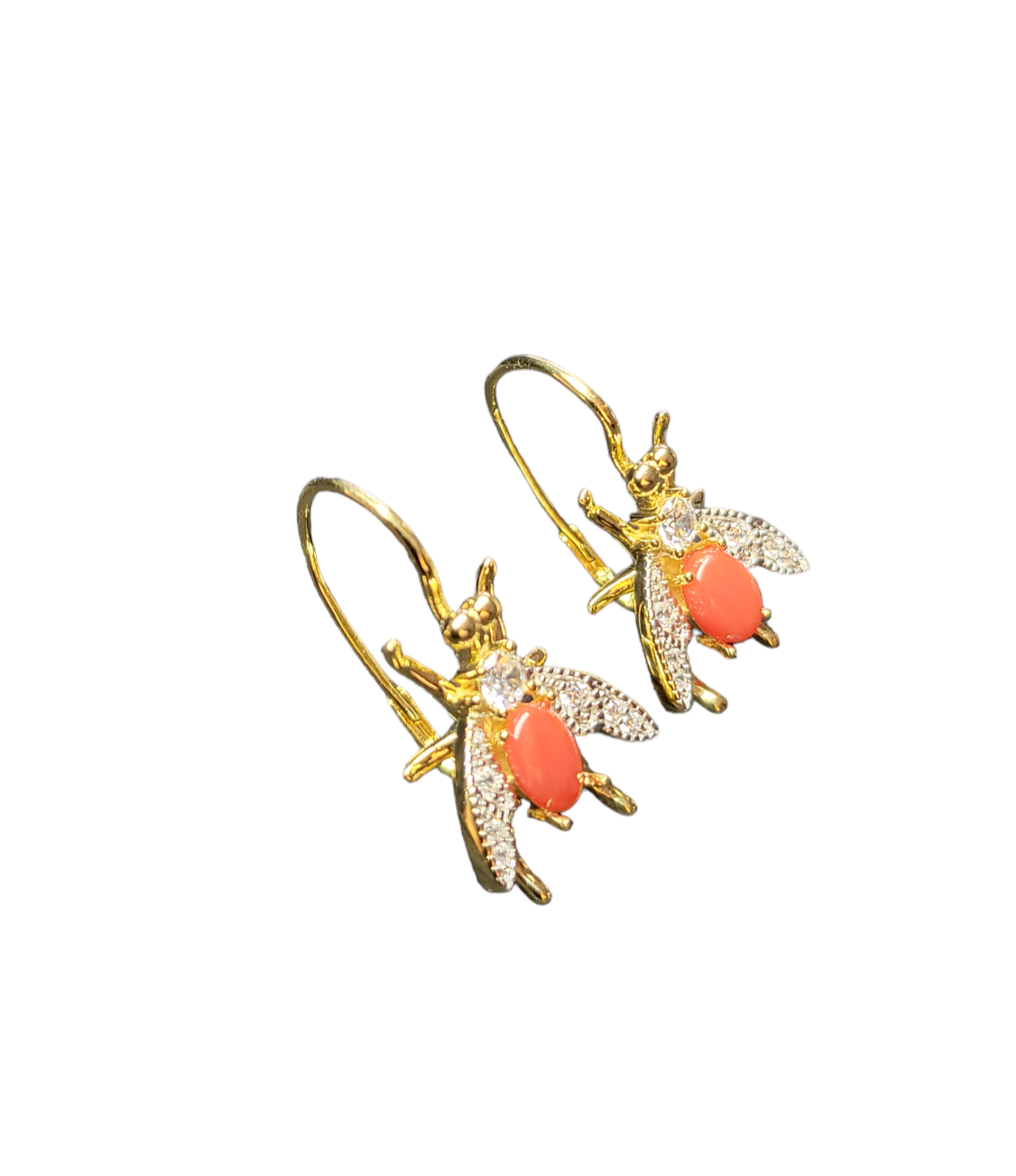 QuestI elegantI e scintillanti orecchini modello mosca con Corallo naturale Sardo realizzati in argento 925 ed intarsiati con zirconi di altissima qualità AAA. Glamour senza tempo.