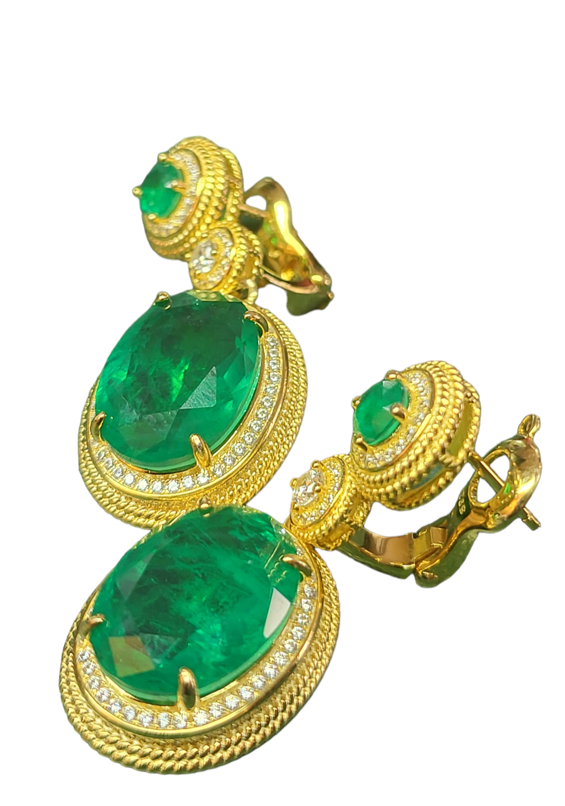 QuestI elegantI e scintillanti orecchini realizzati in argento 925 ed è intarsiato con zirconi bianchi di altissima qualità AAA e smeraldi sintetici. Glamour senza tempo.