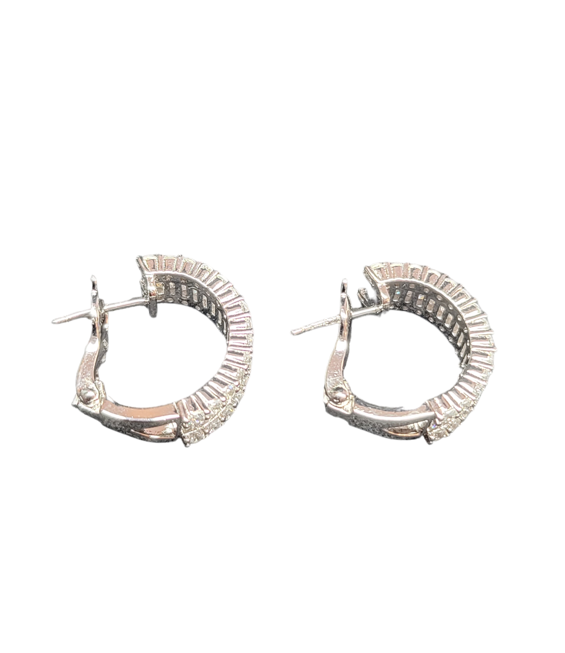 QuestI elegantI e scintillanti orecchini realizzati in argento 925 ed è intarsiato con zirconi bianchi di altissima qualità AAA taglio babuette. Glamour senza tempo.