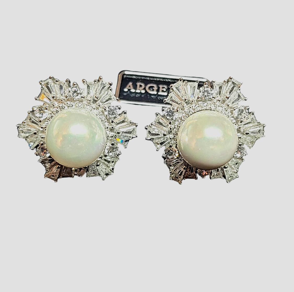QuestI elegantI e scintillanti orecchini con perle naturali realizzati in argento 925 ed è intarsiato con zirconi a taglio baguette. Glamour senza tempo.