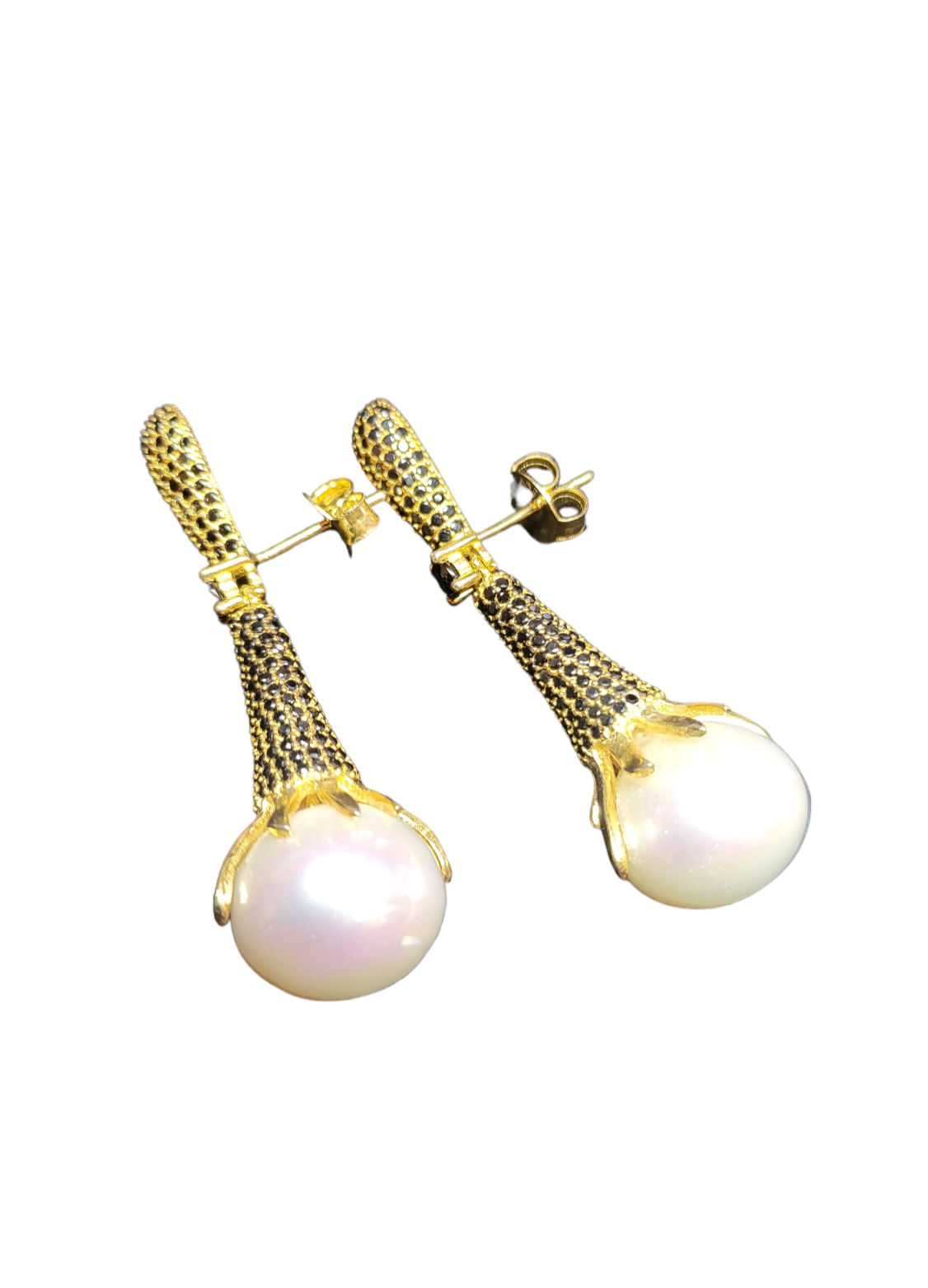 QuestI elegantI e scintillanti orecchini realizzati in argento 925 ed è intarsiato con zirconi neri di altissima qualità AAA con perle naturali coltivate.
