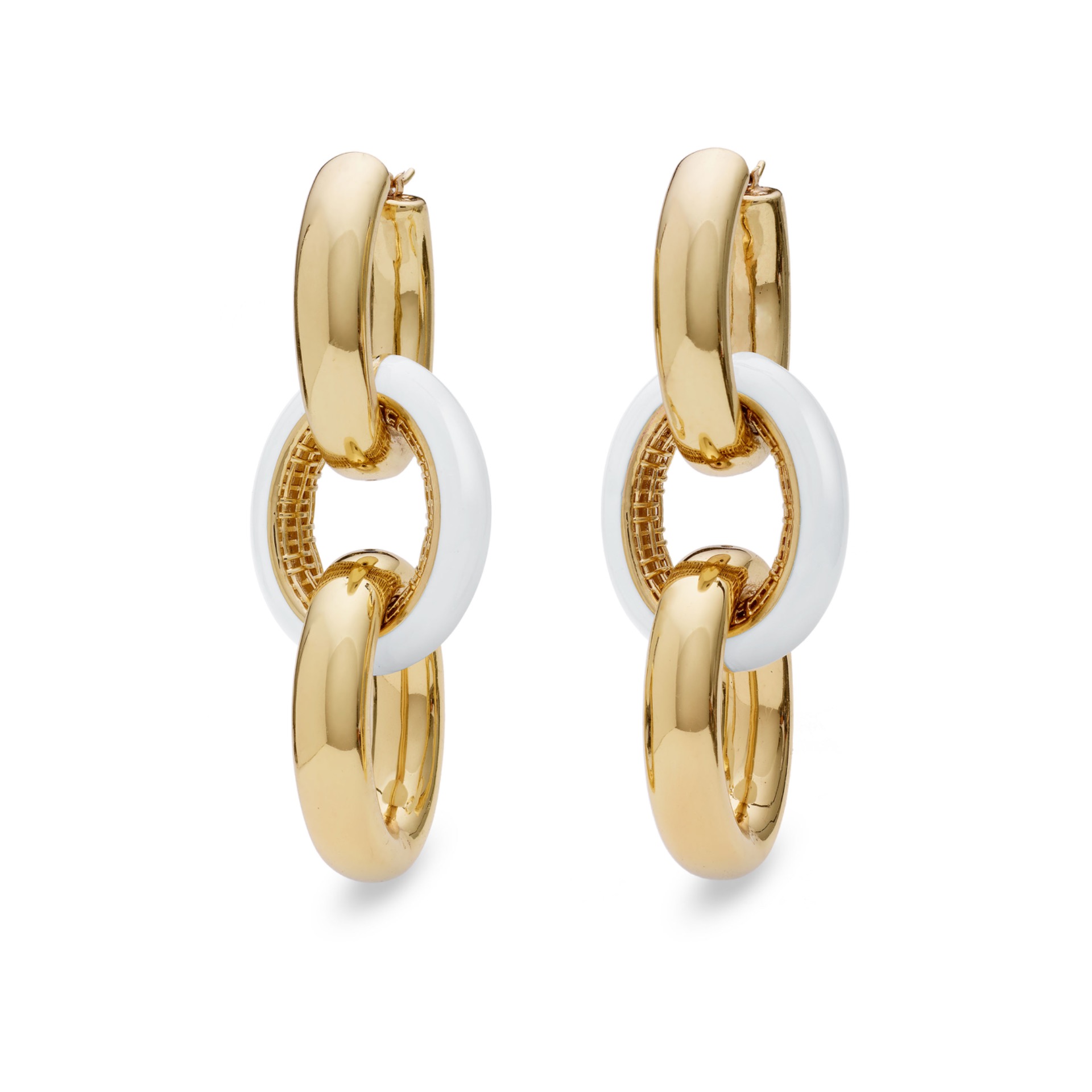 Orecchini cocktail realizzato in bronzo, placcato oro rosa 24kt, impreziosito da smalti azzurri.